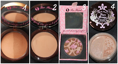 Naquela caixa que eu recebi da Too Faced, vieram alguns bronzers, e antes de falar deles resolvi testar todos {por isso que demorei um pouquinho pra publicar esse post}. Confesso que não foi nenhum sacrifício, eu até já tinha o Pink Leopard da marca e sempre gostei dele, achava inclusive que não precisava de outros.