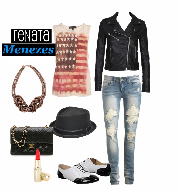 “I love this rock fashion trend, so I came up with this look, which also suits perfectly for the weather in São Paulo. A mix of rocker pieces with a pair of oxford shoes and a fedora hat gave an ‘alternative’ style to this look. I’d wear my hair loose and put on a red and vibrant lipstick and a cat-eye eyline. Total rock glam!”