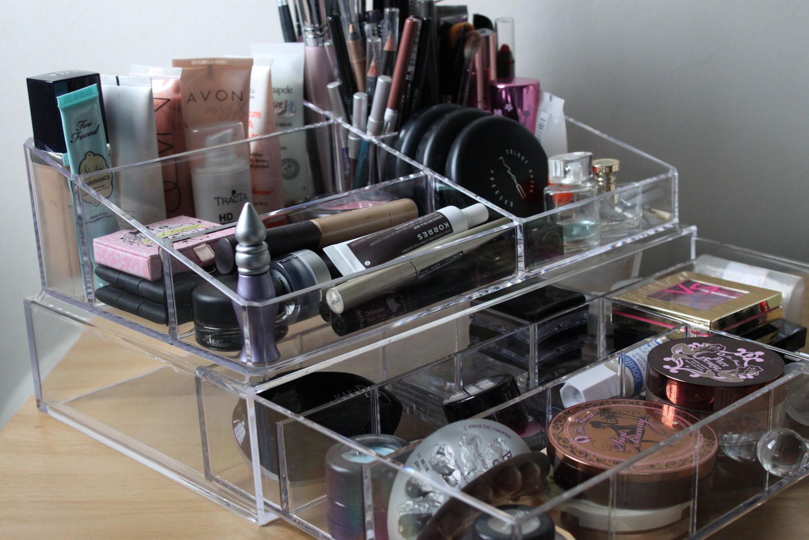 Essa tem seis divisões em cima, e ainda tem uma gavetinha com divisórias removíveis. O bom é que dá para montar a parte da gavetinha de acordo com a necessidade! A caixa custou R$ 150, e apesar de não resolver todos os meus problemas {não cabe as minhas paletas, por exemplo}, já ajudou a diminuir a minha bagunça com tantas caixas espalhadas.