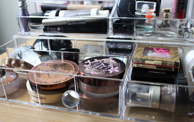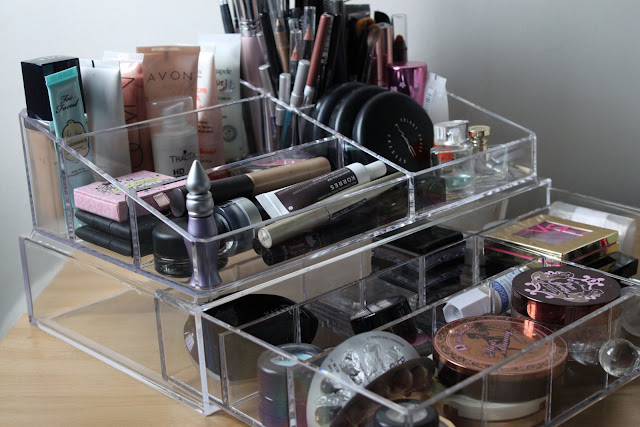 Deus sabe {e meu marido também} o quanto eu preciso ter um espaço para organizar minhas maquiagens e cosméticos! As minhas coisas ficam meio jogadas em organizadores de plástico e em caixinhas de metal ou de madeira que aparecem por aqui, mas fica aquela bagunça feia, sabe?