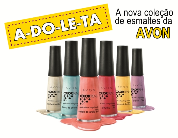 Adoleta – inspirada no sentimento de liberdade e diversão da infância – é a nova coleção da linha Avon Color Trend, e traz seis novas cores em tons lúdicos: Jujuba, Amarelinha, Pirulito, Castelo de Areia, Banho de Chuva e Bolinha de Sabão.